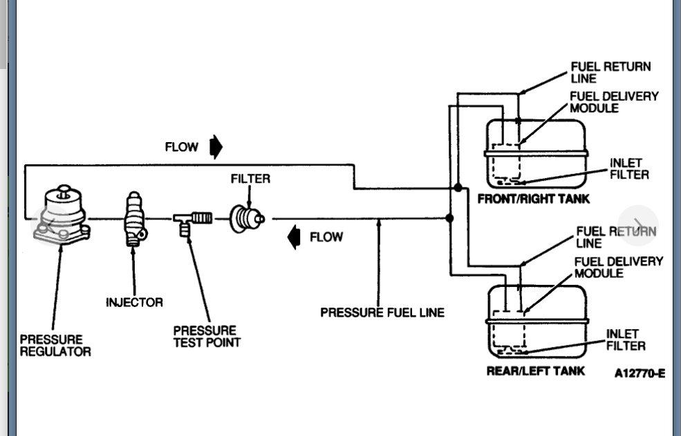 The sending unit on the front tank is out, always reading zero fuel. So as a result, I always run off my rear tank. No matter what the conditions are, I almost always have fuel seeping out of my filler neck/fuel door on the front tank. To test it, I filled the front tank and drove on it for about 150 miles to run the fuel level down to about 1/2 capacity. Then I switched to my rear tank and have driven on it since then, filling the rear tank up twice since. No matter what, fuel still seeps out of the front tank filler neck. I have come to the conclusion that a) fuel from my rear tank is being pumped to the front tank or b) the return line is only feeding back into the front tank, which means I have a bad shuttle selector valve on the rear tank FDM (I think). I just can't understand how so much gas has been fed into my front tank if it is the return line to where it is overflowing. I need some professional advice please. Thank you!