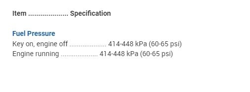 Fuel pressure specs needed