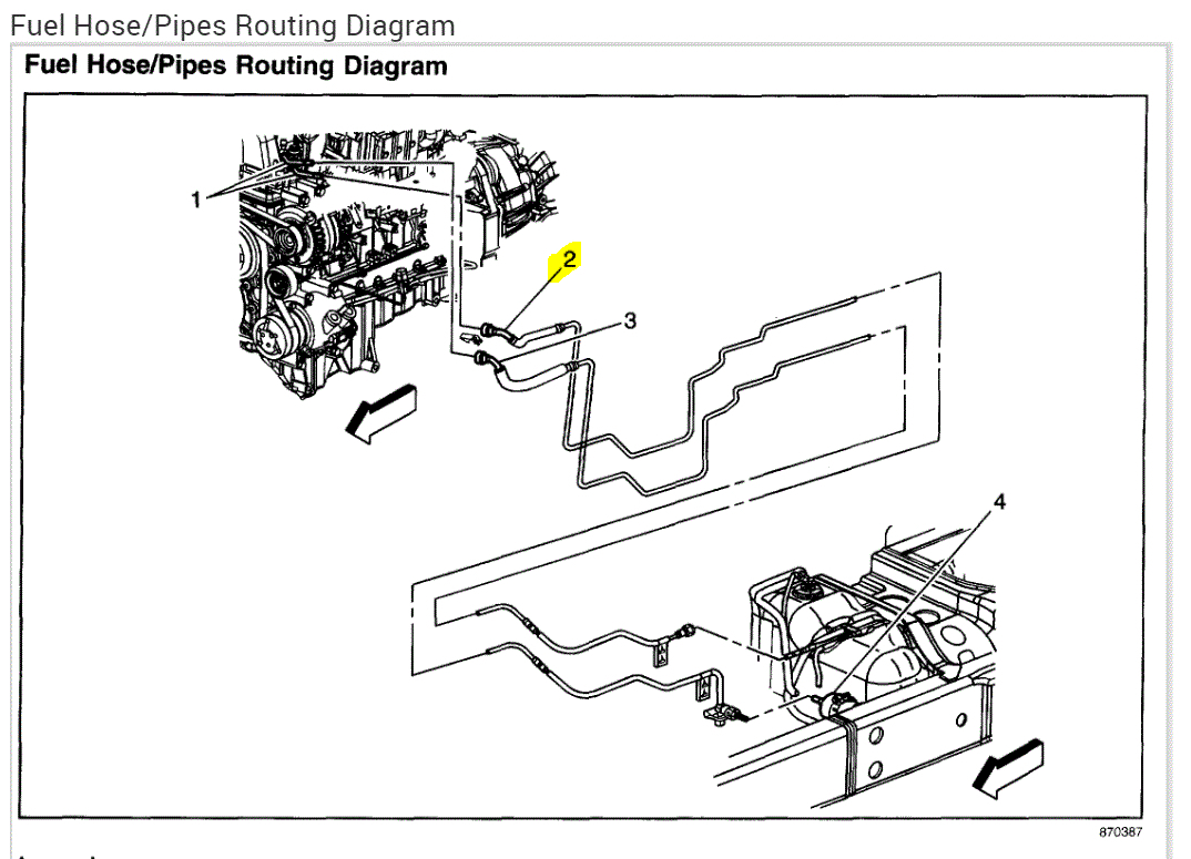 Next, the fuel system has a return line to the fuel tank. If the problem continues, I'm questioning if something has plugged the return. However, since it ran well for a few trips, I'm even questioning that. If you look at pic 1, it shows the fuel lines. The highlighted one is the return.