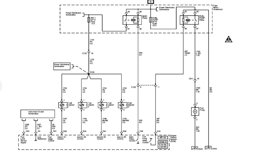 It could be either an electrical issue or the fuel pump itself has failed. If the fuse is good you need to test and see if the pump has power at the color wire listed in the diagram. If it does, have power, the pump is bad. If it does not, you need to check the relay in the fuse block.