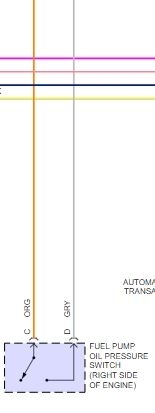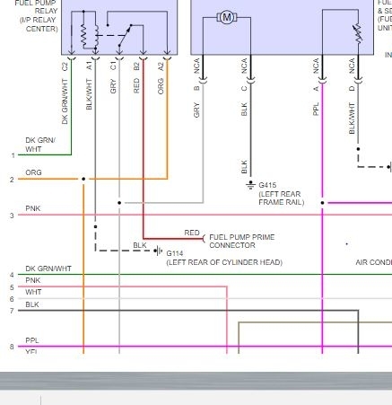 I have been looking through wiring schematics and have determined it can only be a few things. First, make sure the fuel pump ground is good. Next, look at picture 1 and 2. They are from the same page, but I had to copy it twice for it to fit and be readable. These pictures show the fuel pump relay, oil pressure switch, and fuel pump. Power is supplied via the orange wire which runs to both components and then to the pump. If the relay is good, suspect the oil pressure switch not allowing power to the gray wire. If the oil pressure switch is good, suspect the relay is bad. Next, confirm there is power from the orange wire going to these components. Power is supplied via the PCM pin 3 (see picture 3). Confirm power is present and there is no break in the orange wire.