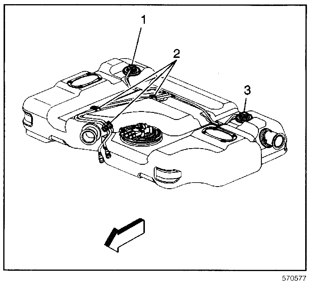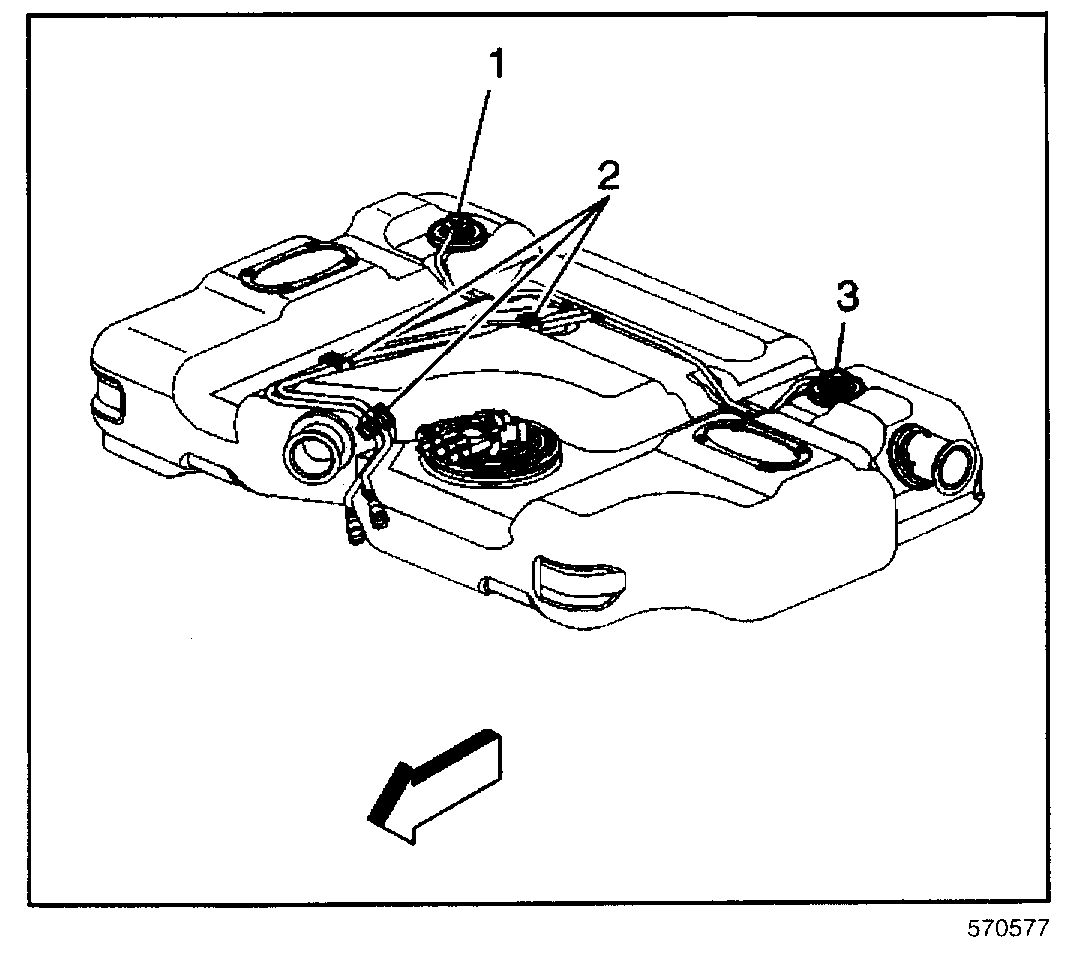 5. Drain the fuel tank. Refer to Fuel Tank Draining Procedure (Cab/Chassis) or Fuel Tank Draining Procedure (Utility Front Tank) or Fuel Tank Draining Procedure (Utility Rear Tank).