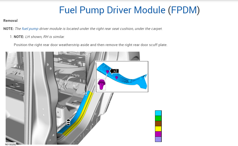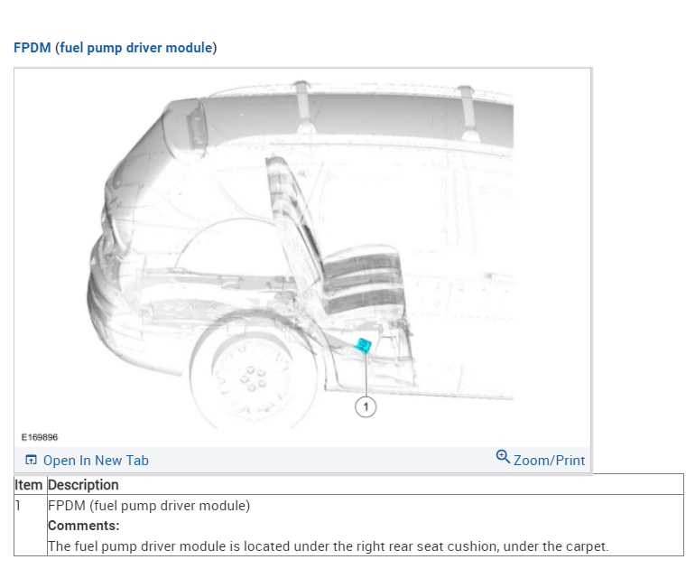 Hello, The Fuel Pump Driver Module is located under the passenger side rear seat. The diagrams show it from the Driver side, but it is the same removal process. I will include the wiring diagram in a couple minutes in case you want to test it for power and ground, which is recommended.