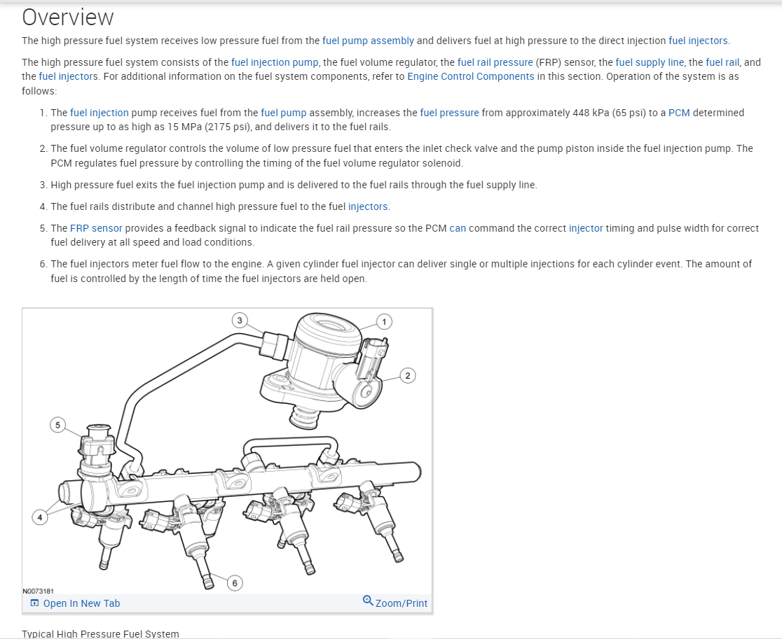 This vehicle has a low pressure and high-pressure fuel system, do not attempt to check the Fuel Pressure from the High-Pressure Fuel Pump. It is rated at 2175PSI and can cause serious injury. It is recommended to check Fuel system status using a scan tool and live data PIDS first to verify Actual and Requested Fuel pressure on the High-Pressure side.