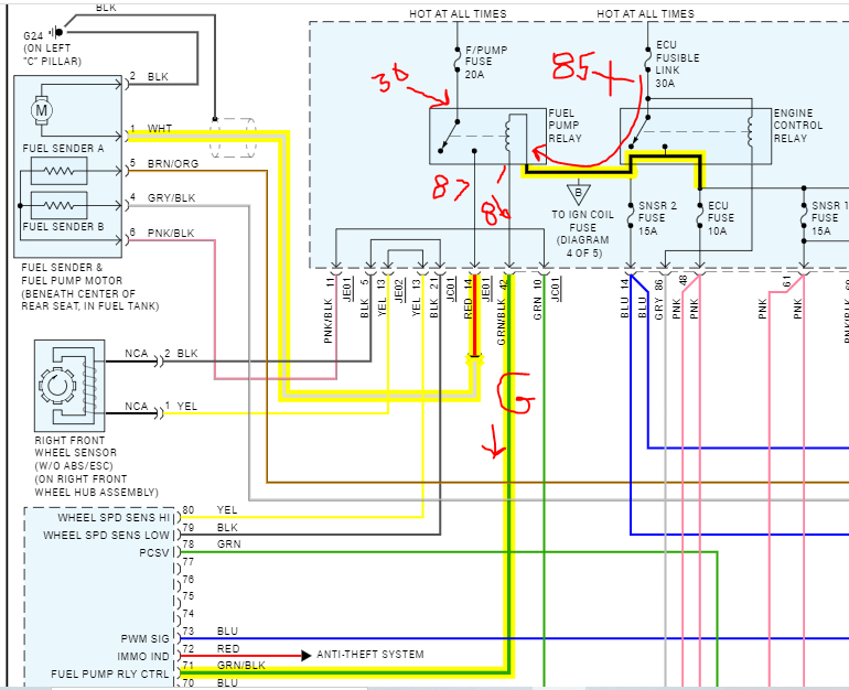 When I turn the key to the on position, the fuel pump does not turn on. The fuse is good, the relay has been replaced. I got a socket tester, and I am able to inject power to the pump and make it run, so my problem is on the control side.