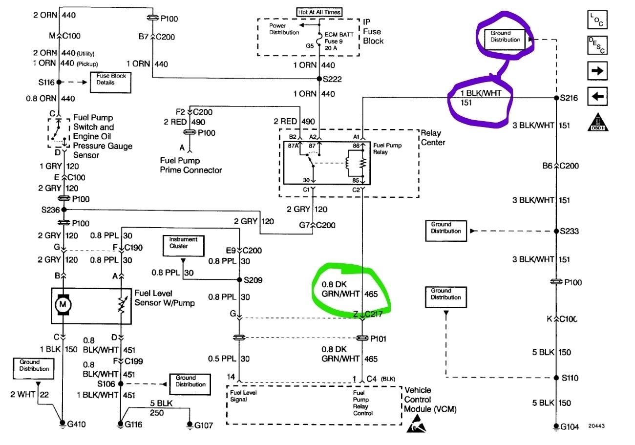It recently shut off while driving and wouldn’t start. Got it home and fuel pump wasn’t working, replaced it as I still had warranty from two years ago. Long story short, pump runs if I use fuel pump test wire when powering with 12v, power going to purple wire at (Delphi) pump but no signal on grey wire coming from relay. Power at fuses 9&10 with key on. Pump does not prime with key in on positions. I have continuity from pin 1 (black I believe) in PCM, dark green/white stripe to the relay but it isn’t working, no click, jumping 30/87 does nothing.