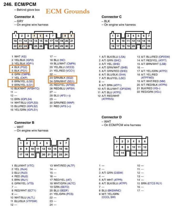 Diagrams 7,8 are the Grounds for the ECM. You can back probe these with a regular test light attached to a 12v source and the light should not drop out while cranking, being grounded through the ECM connectors.