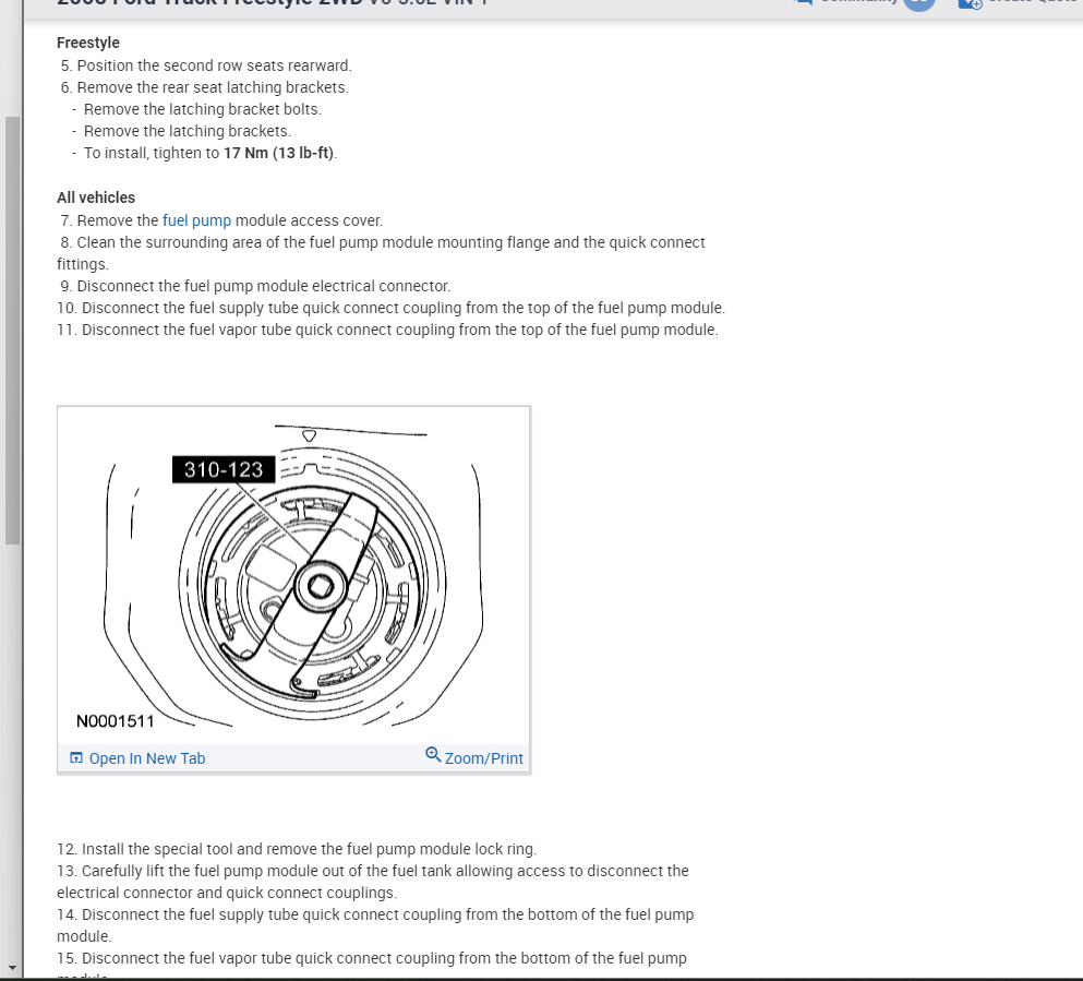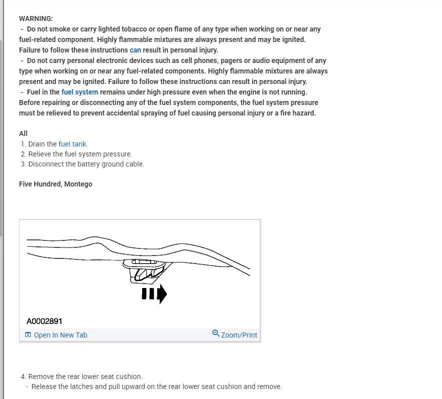 However, from what I can tell, there may not be an access panel like there is on the Freestyle so here is a guide that will help with removing the fuel pump: