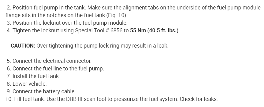 Thank you very much for the information about the fuel pump! The replacement solved the problem. Now if I could ask another question pertaining to the right rear brake pads dragging on the same vehicle-2001 Sebring convertible 2.7. This is my Grandson's vehicle so I only see it when he has an issue. The right rear brake stayed partially applied and when he arrived the pads were wore down to the metal. I replaced the pads, rotor and caliper after removing all rust and build up that may have interfered with the movement of any contacted new parts, everything moved freely as it should have. Fast forward 700 miles. He arrived again with the same issue. The brake components were so hot the caliper piston boot melted. I took all parts back and had them replaced under warranty and installed them. Fast forward 1,000 miles , I checked and the pads on the the brake - half gone, the driver side pad were replace at the same time and are not noticeable worn. I checked the rotation of the tire and noticed a slight drag, then took the tire and rim off and checked the rotation ,there was drag and the caliper had free movement ,but the pads and rotor moved with the caliper. I then again took all parts off and looked for anything that may have obstructed brake fluid flow. I found nothing. I checked to see if the flow from the other rear brake was the same when loosening the bleeder valve and it appeared the bad brake line was similar, possible a little slower. I tried to trace the line from the caliper to the reservoir but could not. then took off reservoir cap and put 110 ponds of air pressure into the brake line to see if it may have restrictions. the reservoir did not rise. I'm baffled? Any suggestion would be appreciated.