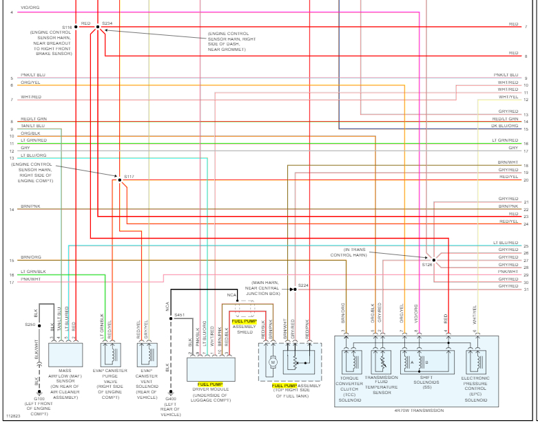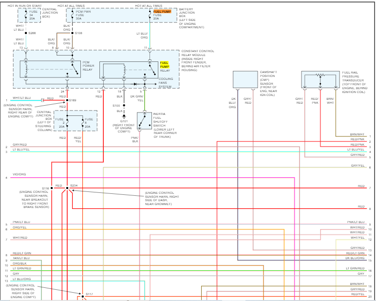 Anytime there are wiring issues, it's a mess. LOL Regardless, I attached the wiring schematic for the powertrain control circuits. The fuel pump is integral.