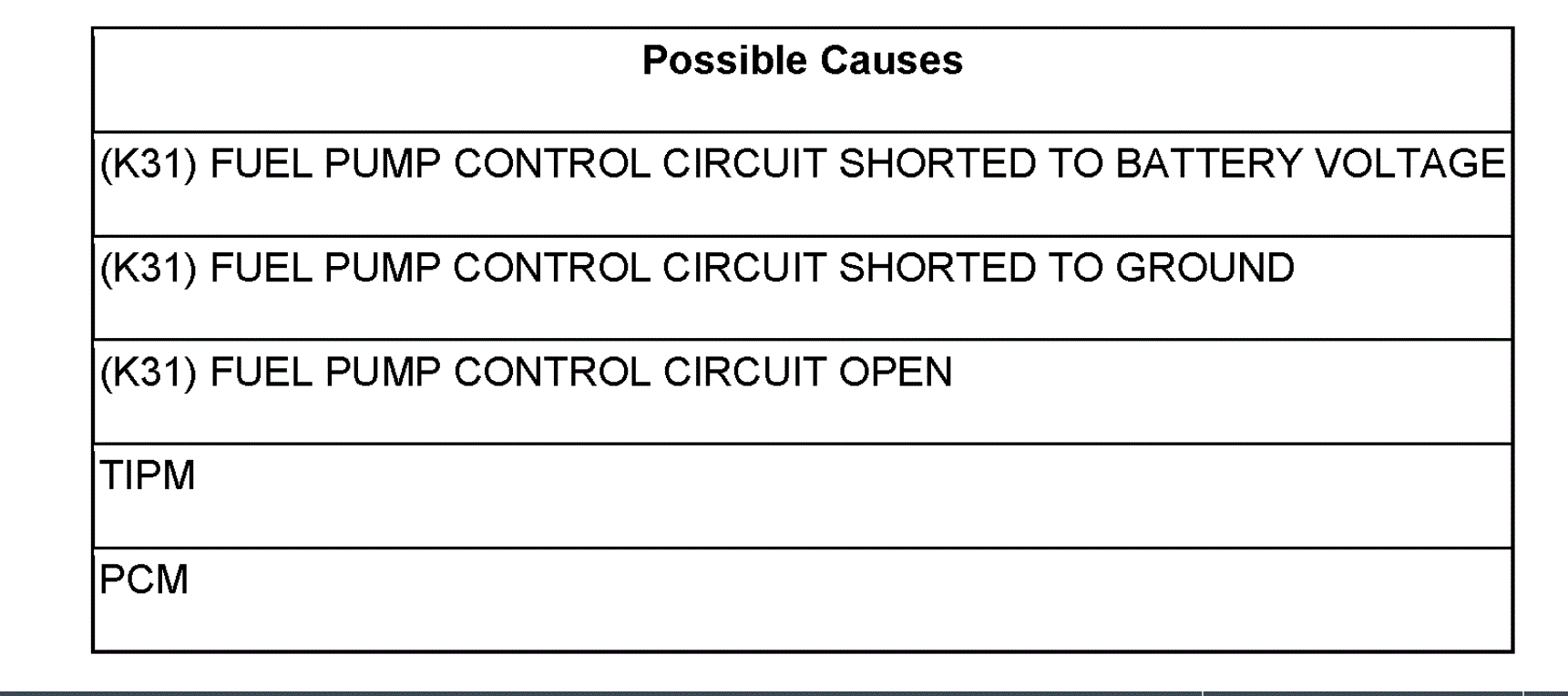 - Repair the short to ground in the (K31) Fuel Pump Control circuit.