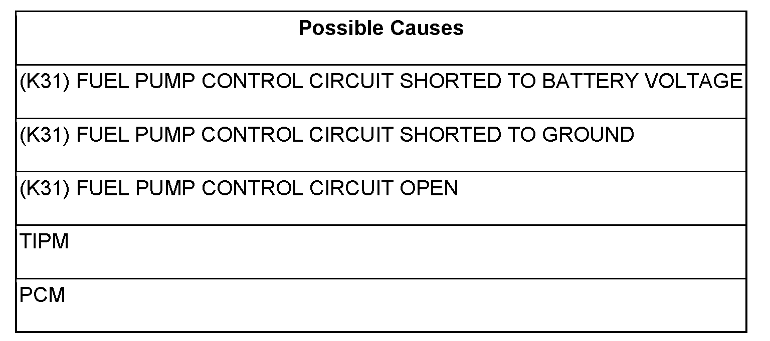 - Repair the short to voltage in the (K31) Fuel Pump Control circuit.