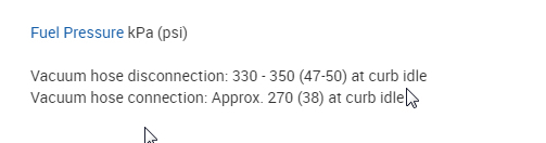 You have a vacuum operated fuel pressure regulator. That means if you disconnect the hose while the engine is running the pressure should jump to about 50 PSI while it is running. If it does, then your regulator is good.