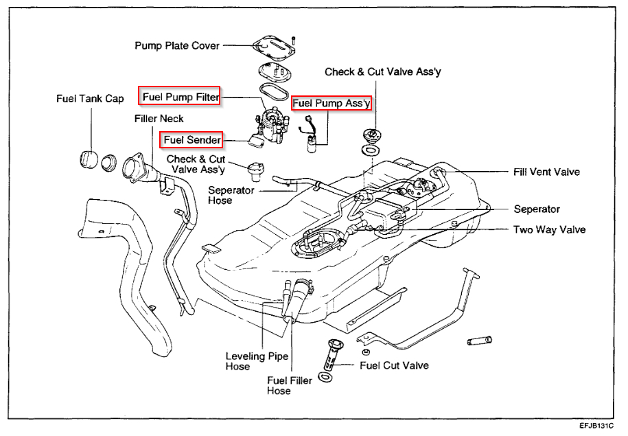 2. A clogged fuel filter preventing enough fuel from being delivered to the rail - unfortunate thing is the filter on your vehicle is part of the pump so as long as you changed the entire assembly and not just the pump portion, then that is not the issue either. (You would know this if you had to move parts over from the old pump to the new one, or did you just take the entire fuel pump out and put the new one in? See attachment 4, the three main parts of the pump assembly are circled)