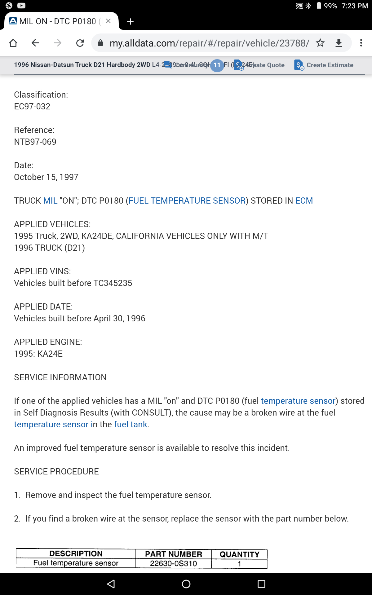 Shuts off while driving, code p0180, fuel temperature sensor