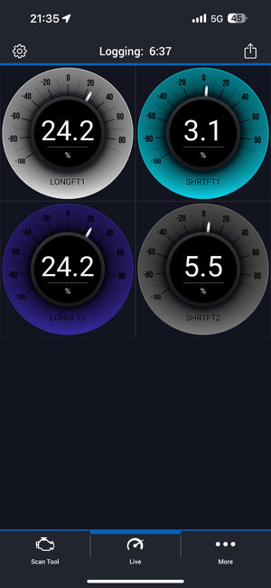 So, my fuel trims are all messed up, I attached a picture showing what they are at idle, this is warmed up. They do go down to 8-14 while under load but the second the vehicle stops, they skyrocket to about 24 on both banks. The short-term trims are usually close to 0. The truck also constantly hard starts, will usually start up first try in the morning though.