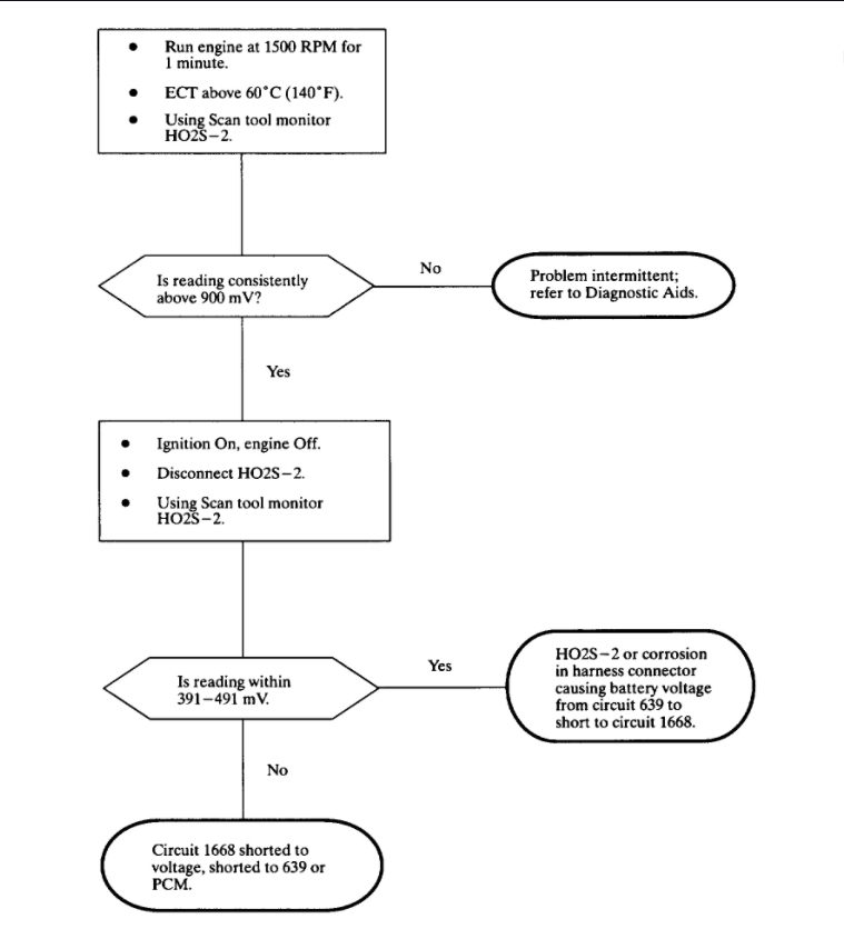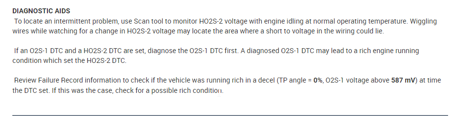 If an O2S-1 DTC and a HO2S-2 DTC are set, diagnose the O2S-1 DTC first. A diagnosed O2S-1 DTC may lead to a rich engine running condition which set the HO2S-2 DTC.
