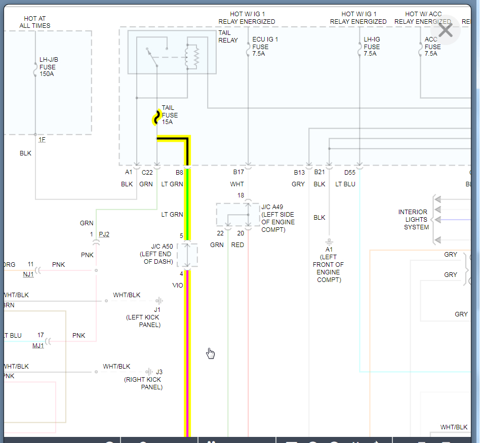 I attached the info about this fuse. It is actually a shared fuse with the taillight system. Check out the diagrams (Below). Please let us know if you need anything else to get the problem fixed. Let me know if you need more info. Thanks