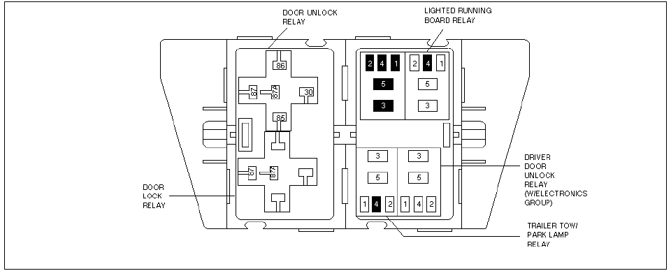 Correction it does say auxiliary relay box number two left rear of vehicle, above wheel well.