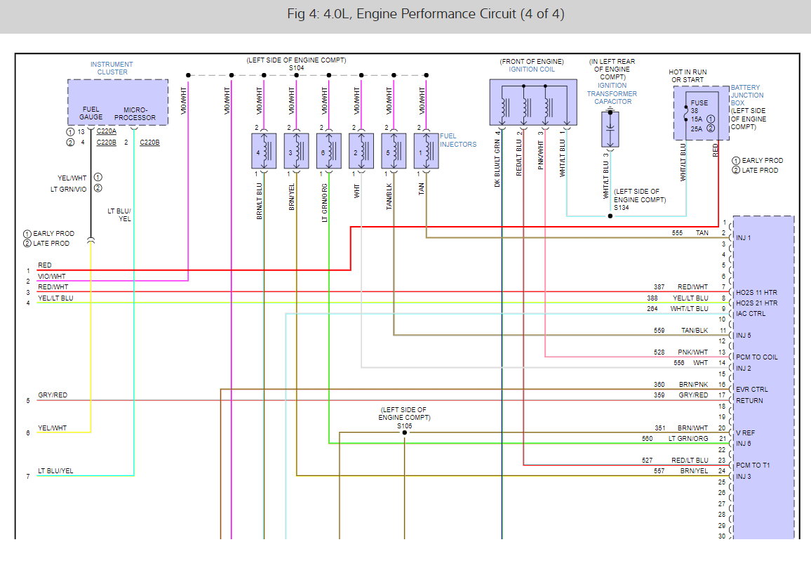 This has been one good truck until a couple of weeks ago, it completely destroyed all of its timing guides and tensioners fixed, then never got it times right. Long story short I replaced the motor with a fresher one from the junk yard. Even with bad tensioners and guides the old motor kept starting until I replaced all the timing components. But as was saying replaced that one and now I'm to the point of starting the new one it now has no spark and blows number the#38 fuse 15a under the hood I've removed every plug to every sensor the injectors the ignition coil pack, the alternator anything and everything hooked up to the harness and it still blows as soon as the key turns on. Where do I start? please help and thank you in advance.