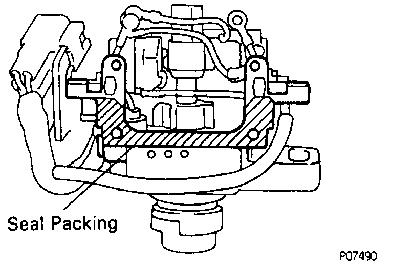 - Apply seal packing to the ignition coil installing surface of the housing as shown in the illustration.