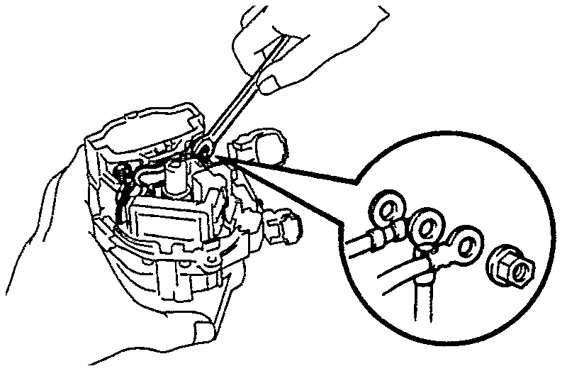 - Remove the 2 nuts, and disconnect the 4 wires from the ignition coil terminals.