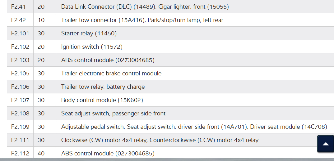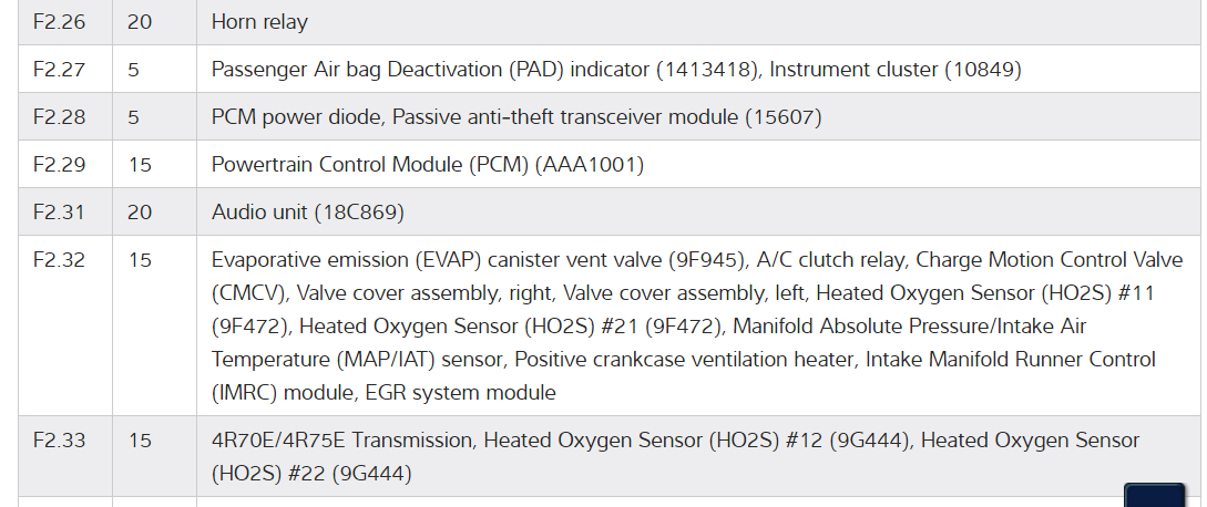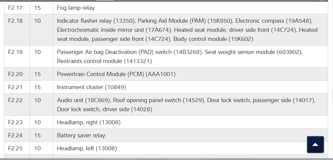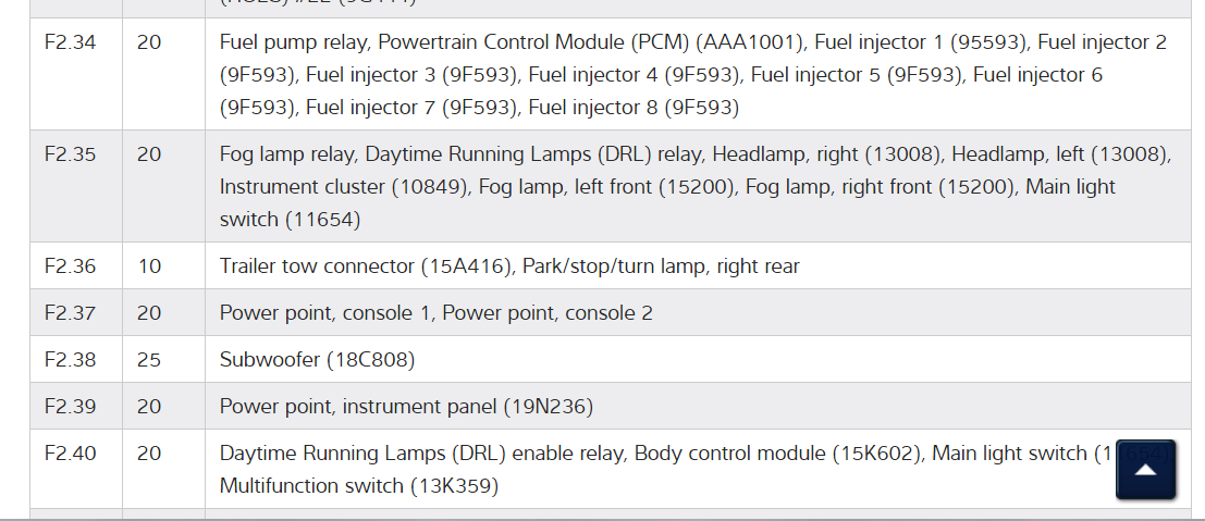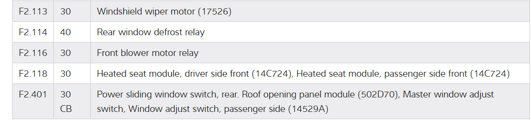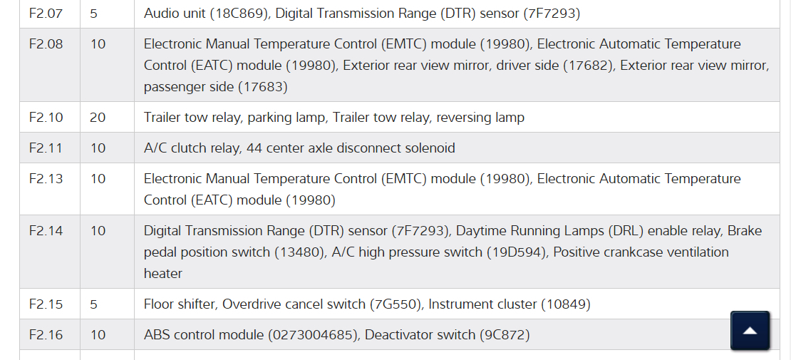 I need to know what fuses go to air conditioning and heating components, blower motor, buttons.