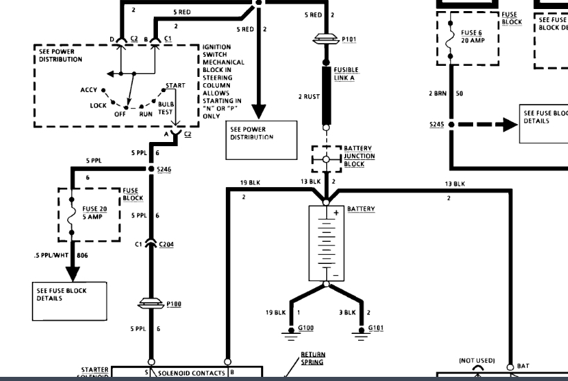 It is very possible that either the starter is bad, the battery is weak, or the cable between the two has excessive resistance. I do not think a fuse diagram is going to help you here, need to confirm battery voltage and also connection at the starter. hope this helps.