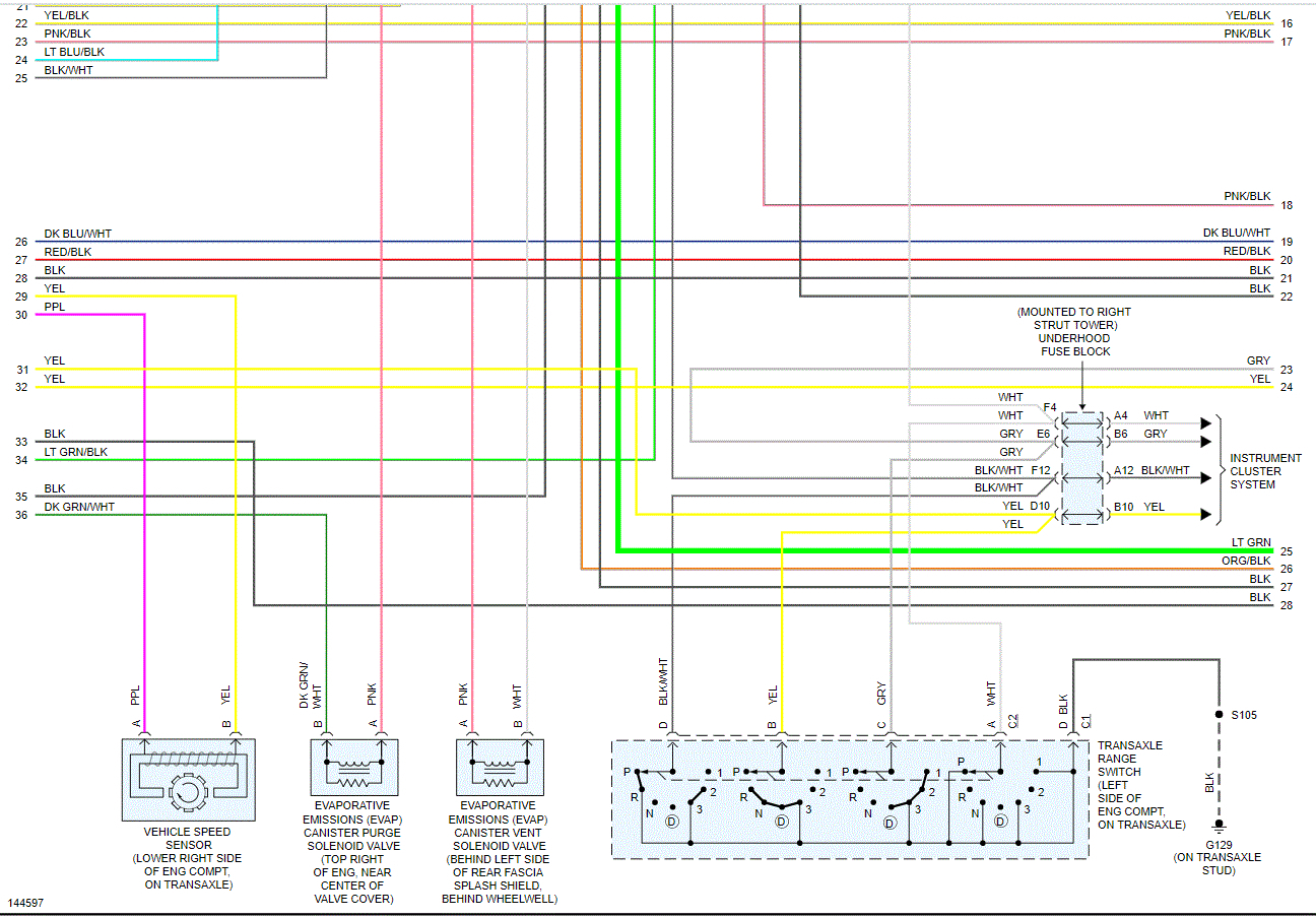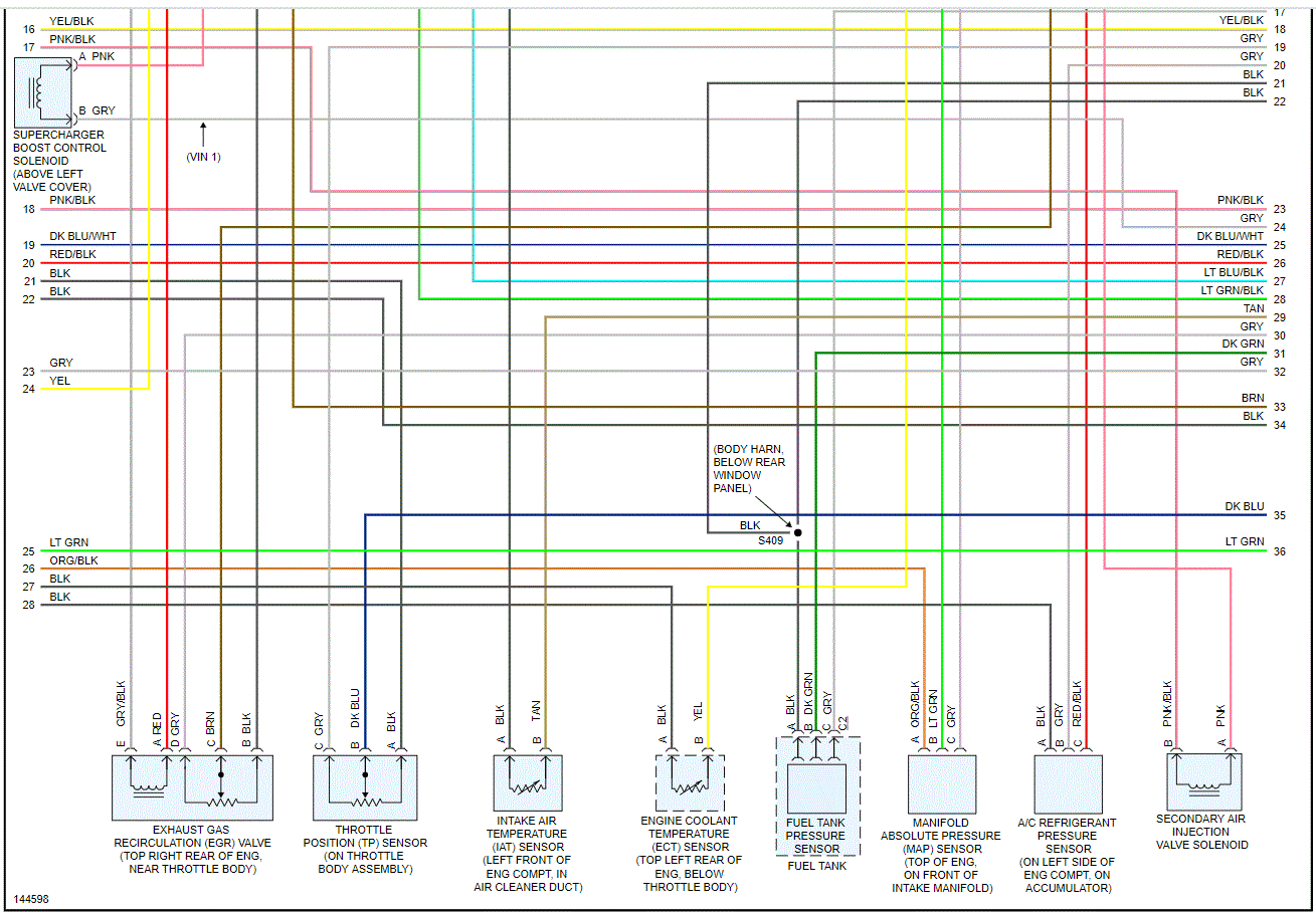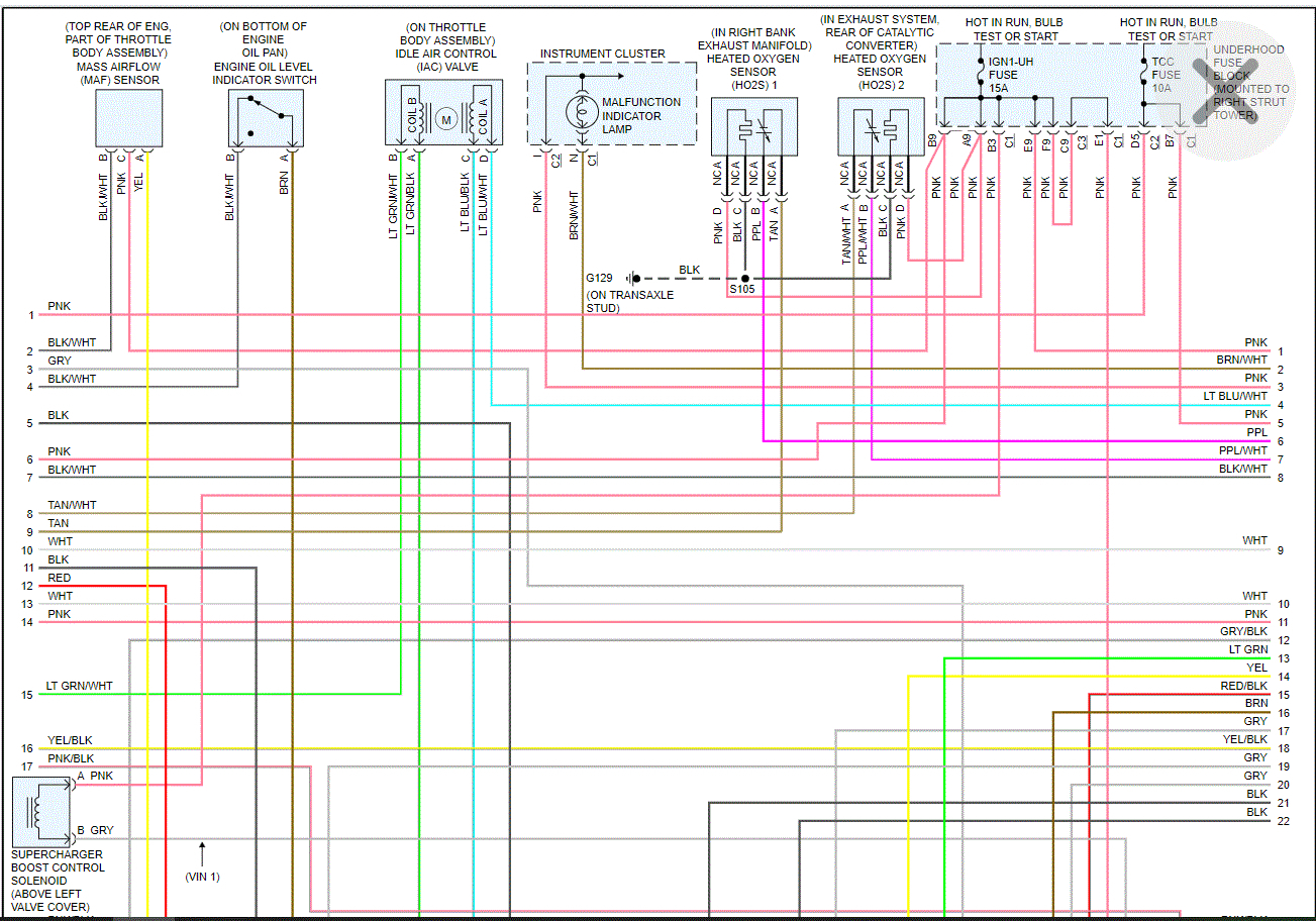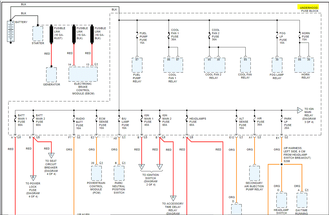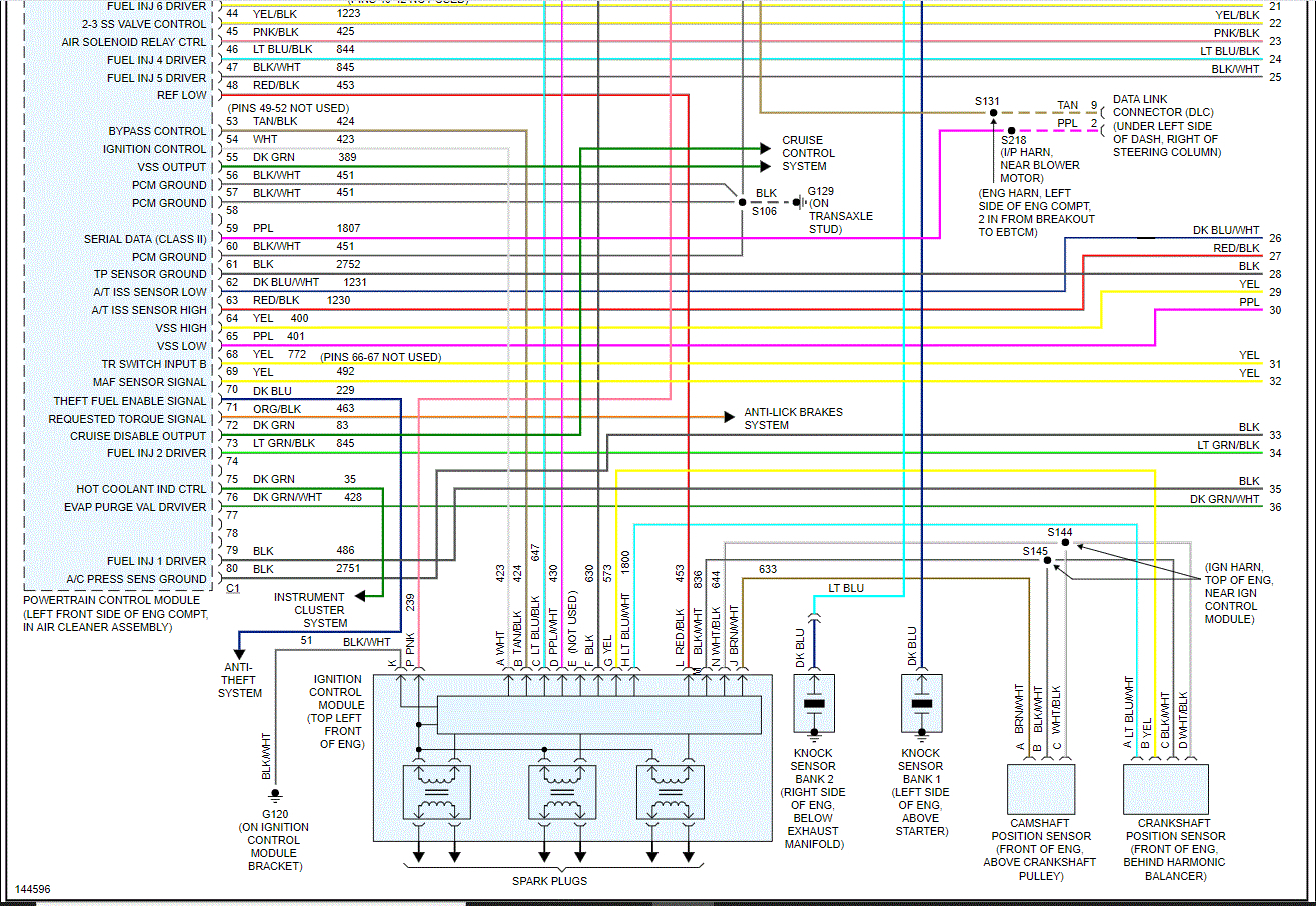 If you look at the pics below, I included the entire powertrain management wiring schematic. I had to cut the pics in half to make them readable for you. However, I did overlap them so you can follow them easier.