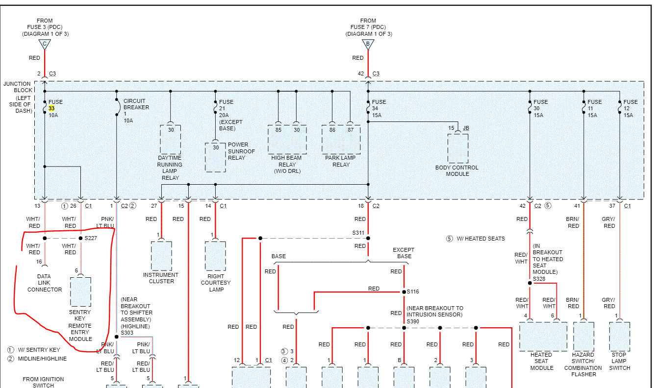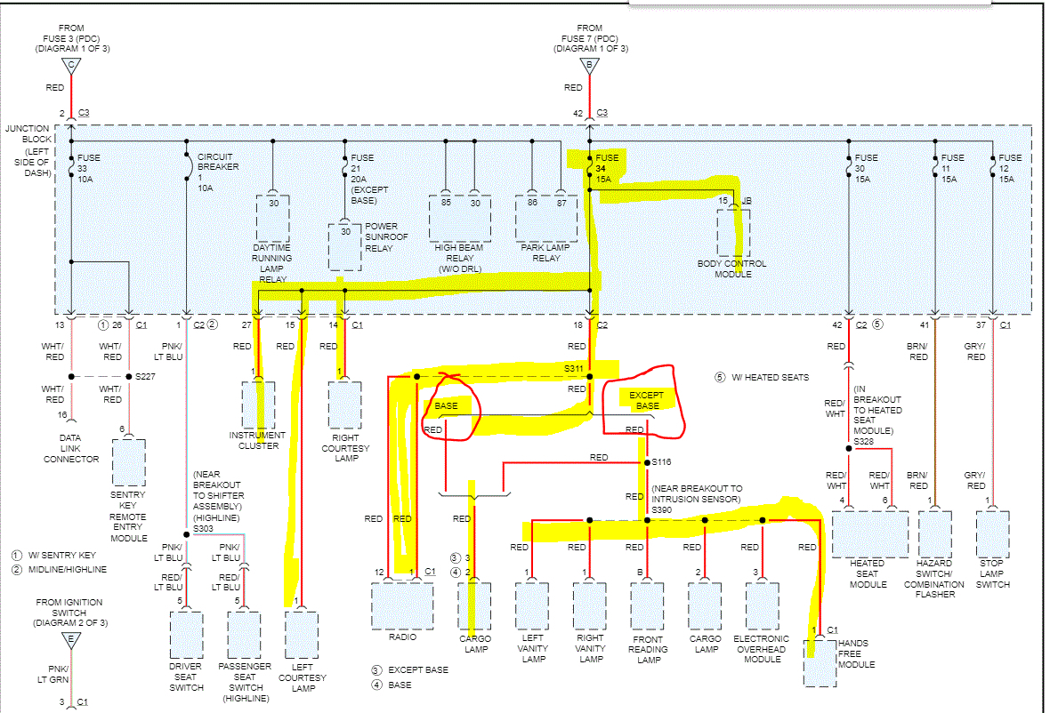 I need to know the connection between these 3 fuses (11-33-34) because whatever it is, it's causing a drain on my battery. I've pin pointed that it is these 3 causing the drain .
