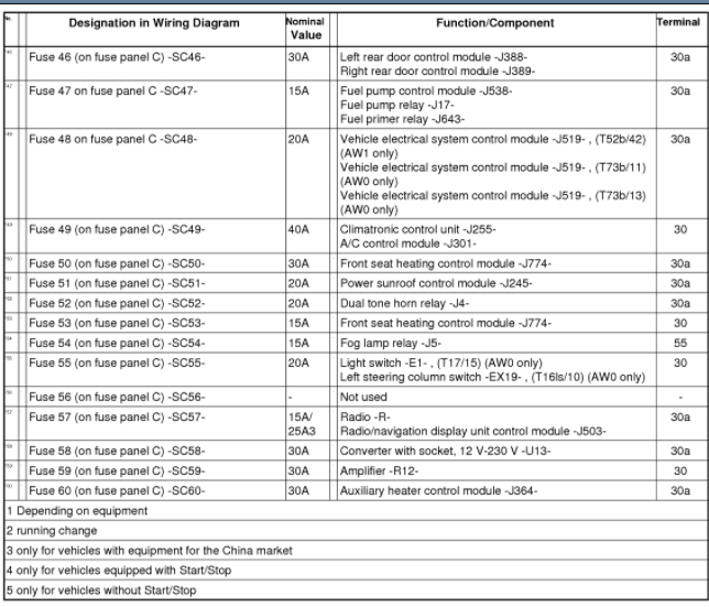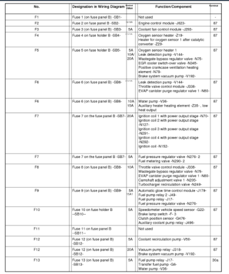 I'm looking for the fuse diagram for the car listed above Comfortline.