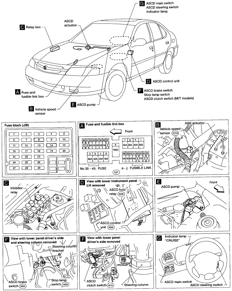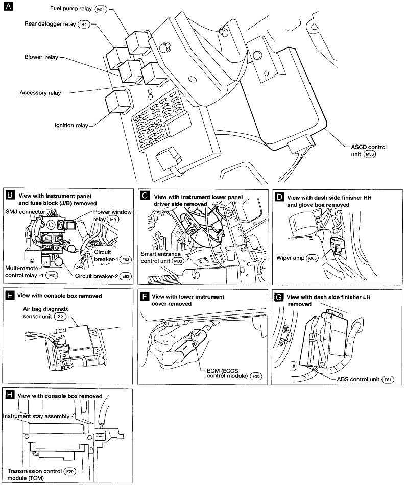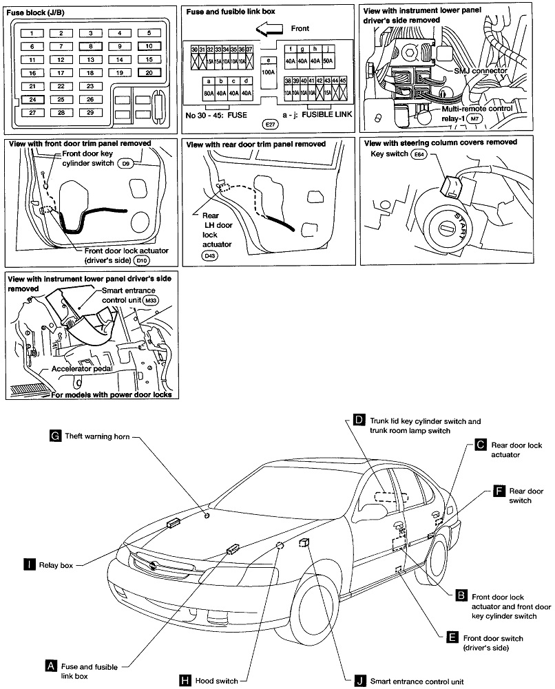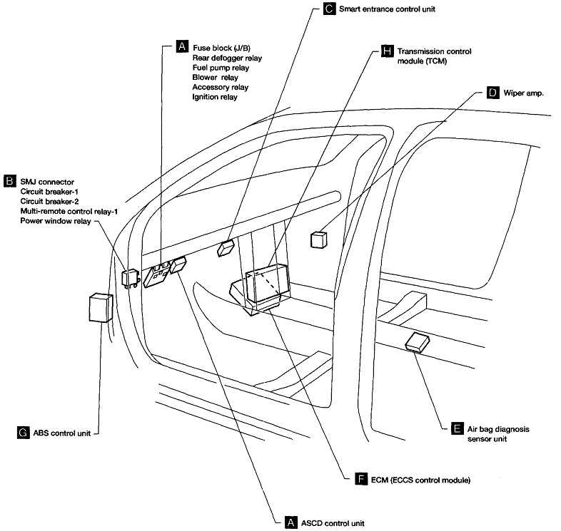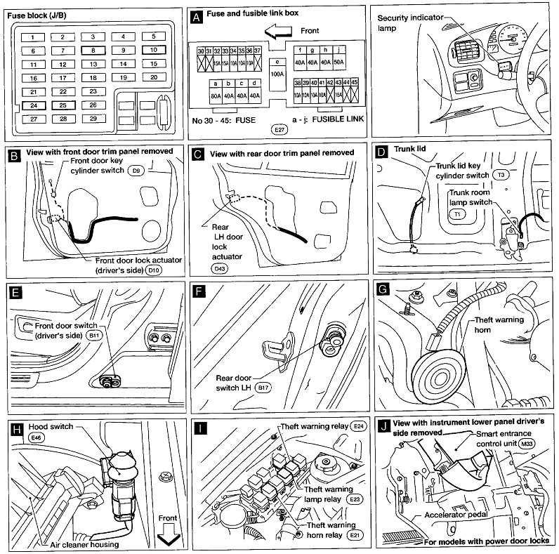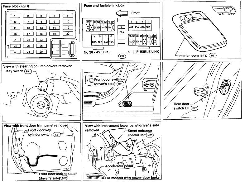 Believe it or not, the people at Nissan think the diagrams I posted are supposed to tell us that. If you look closely at any one of the diagrams, you'll see one or two fuses are represented by a box that's in bold, then the other drawings show the items protected by those fuses. I searched again and everything leads back to those drawings. There are a few others that have even less information and are pretty much useless.