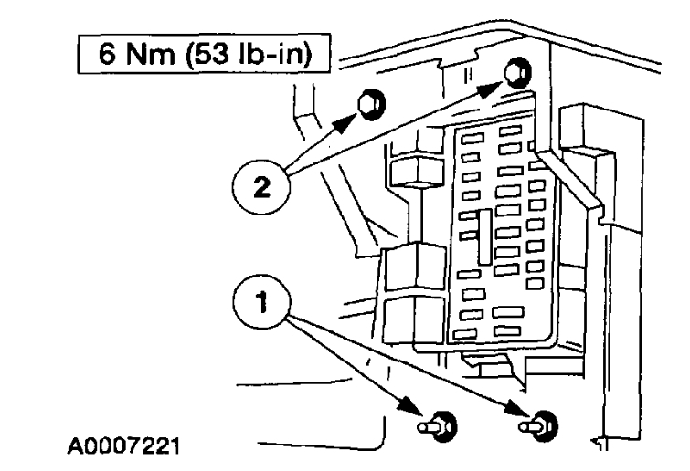 ^ Prior to removal of the module, it is necessary to upload module configuration information to the appropriate scan tool. This information needs to be downloaded into the new module once installed. For additional information, refer to Module Communication Network (Information Bus).