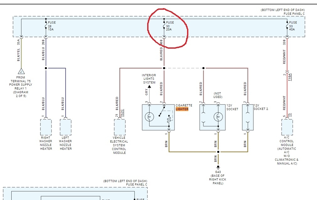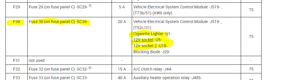 The fuse for the cigar lighter and power ports is located inside the vehicle on the left of the steering wheel. It is fuse 30.