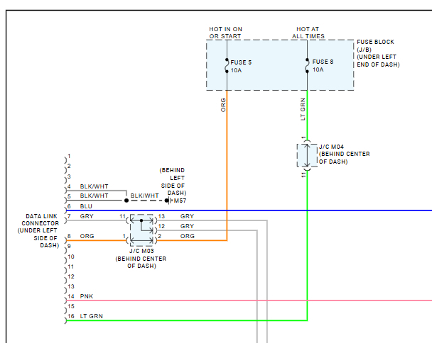There are two fuses of the data port, fuse# 5 and 8 in the fuse panel under the left side of the dash.