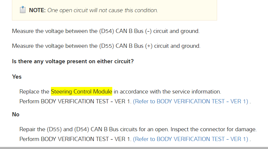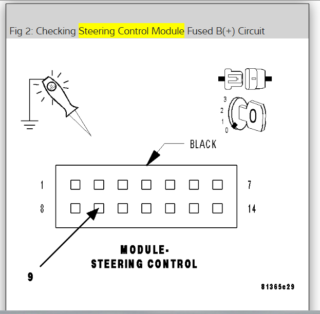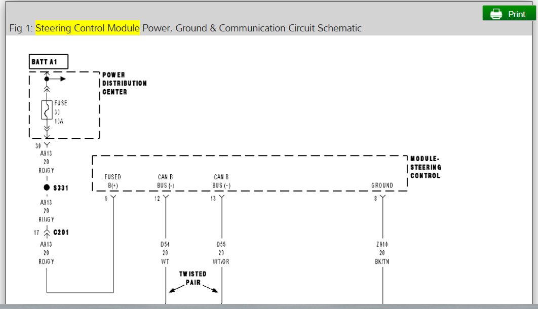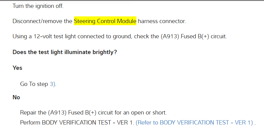 In the diagrams down below I have included wiring diagrams, component location, and diagnostic troubleshooting guide for the Steering Control Module. Please go through this guide and get back to us with what you find out. I have also included a couple of links below for you to go to.