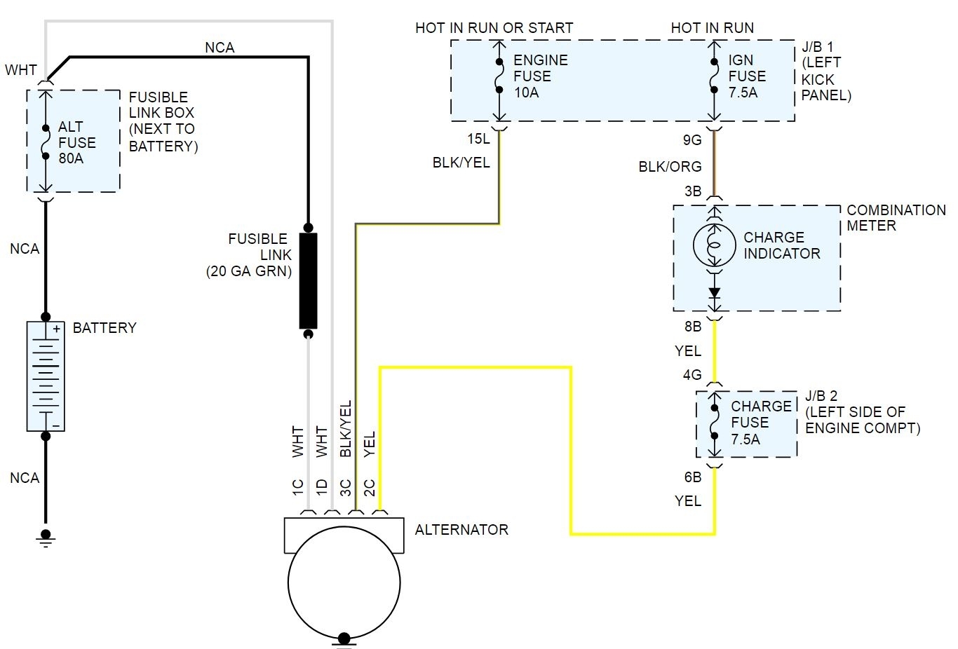 Welcome to 2CarPros. There are replaceable fusible links in the system. The main link is in a box nest to the battery. That is an 80 amp part. Then in the line to the alternator there is another fuse link that can fail.