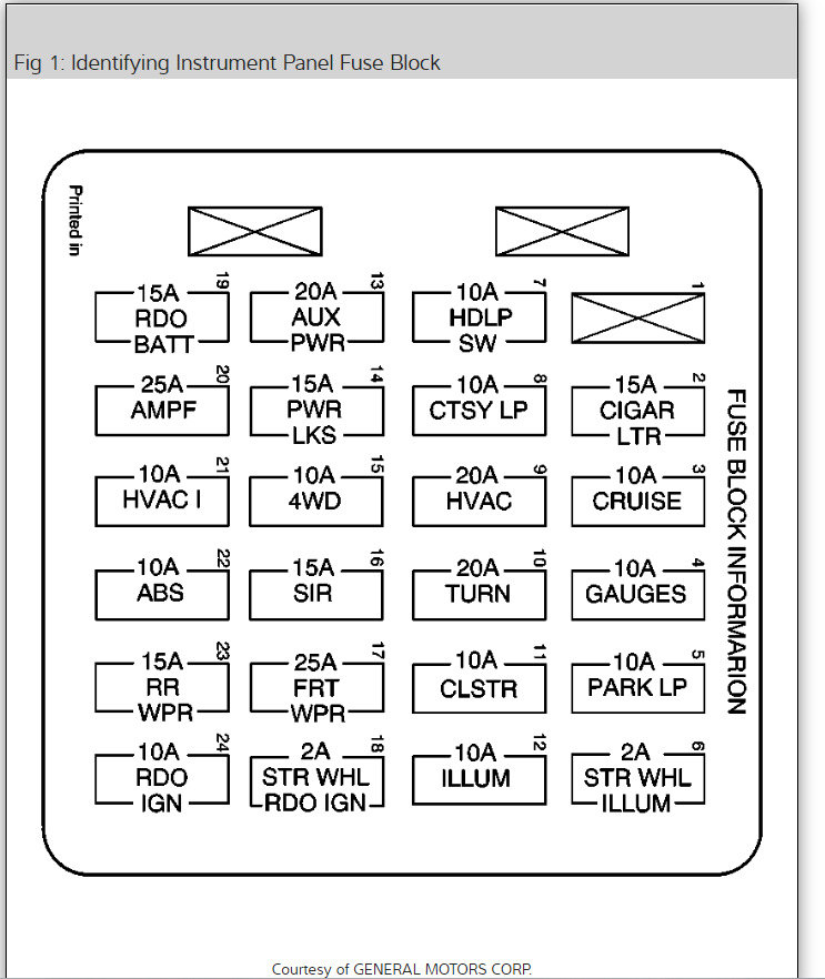 It looks like fuse 17(25A) in the instrument fuse panel which is located on the left side of the instrument panel near the door jamb switch. I have included diagrams if it and the fuse legend below.
