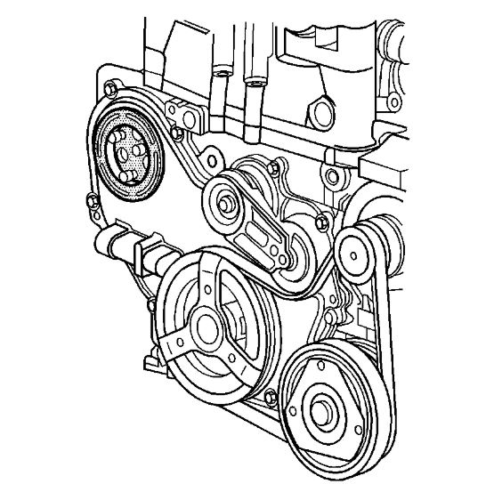 Important: Be sure to remove both water pump bolts from the front of the engine block.