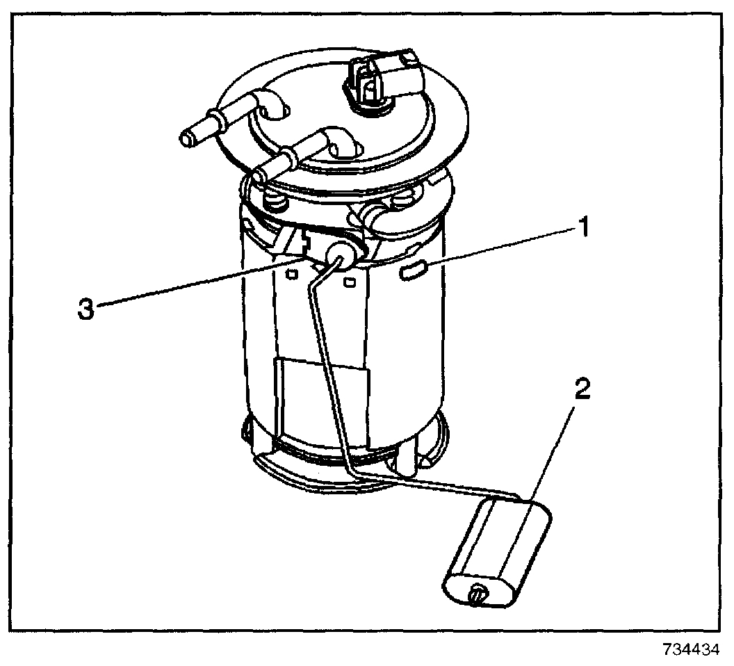 6. Squeeze the locking tangs and remove the fuel level sensor (3).