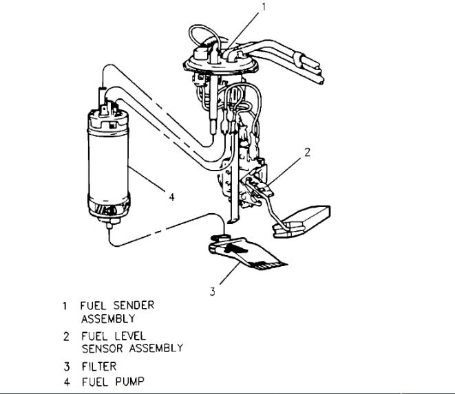 5. Remove fuel gauge sender and pump assembly by turning cam lock ring counterclockwise. Lift assembly from fuel tank and remove fuel pump from fuel gauge sender unit.