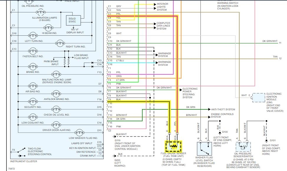 I attached a wiring diagram for you to view. Make sure there is power to the sender unit for the gauge.