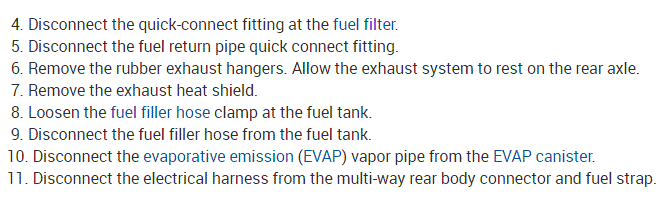 The attachments below provide the directions and pics relevant for the removal and replacement of the fuel tank and the fill limiter vent valve.