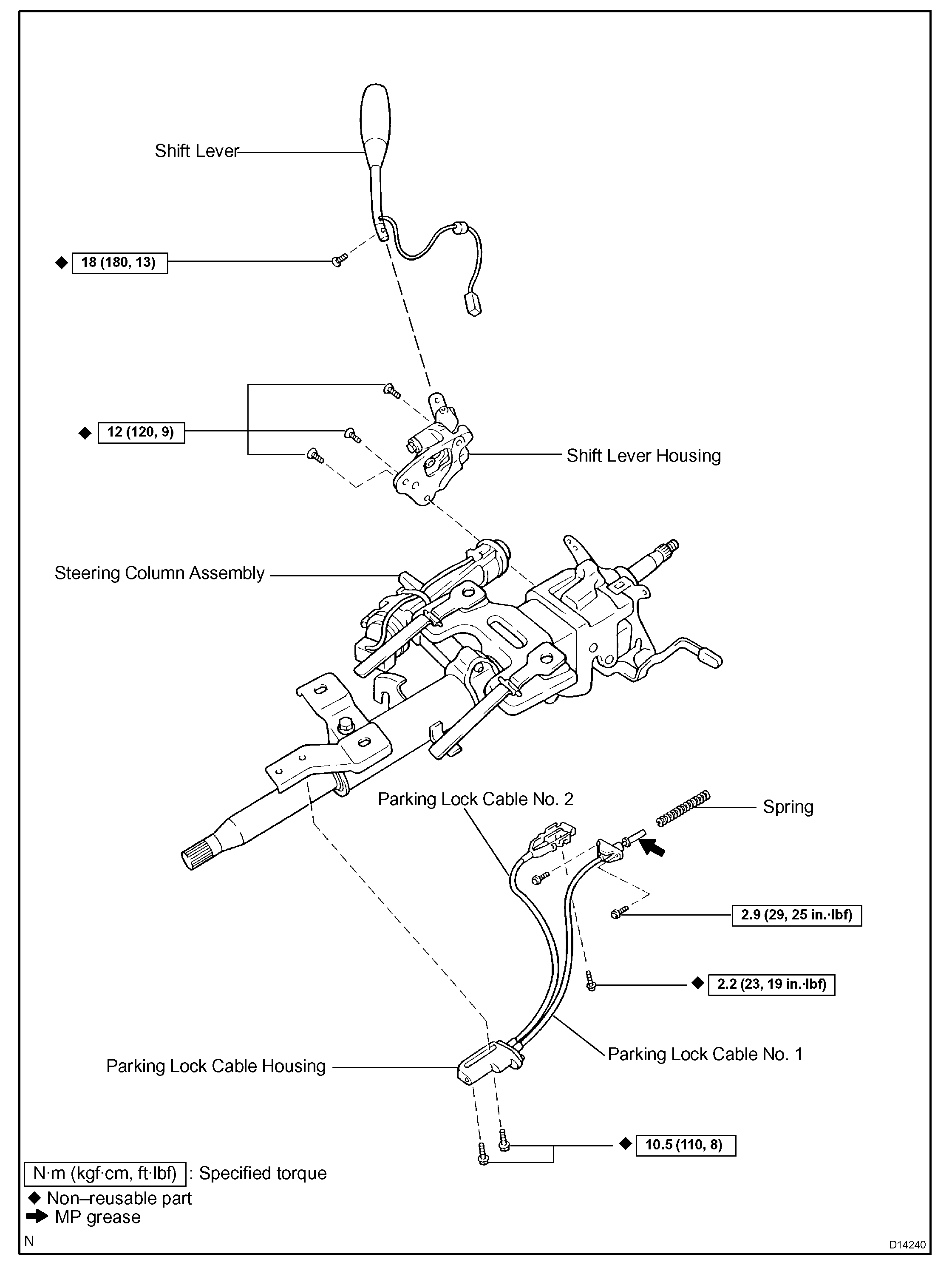 2. REMOVE PARKING LOCK CABLE ASSEMBLY