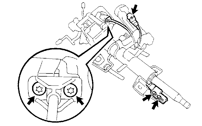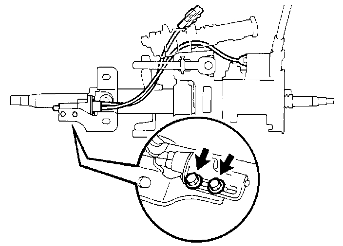 e. Temporarily install the cable housing to steering column assembly with 2 new bolts.