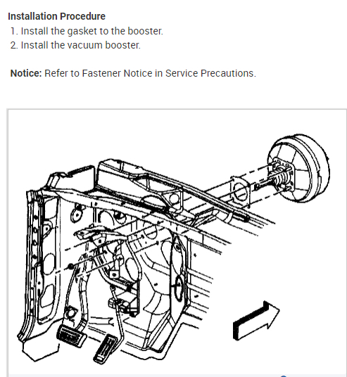 Here is the information you requested. I've attached picture steps below for removal and replacement of the power brake booster on your vehicle. Hope this helps and thanks for using 2CarPros.
