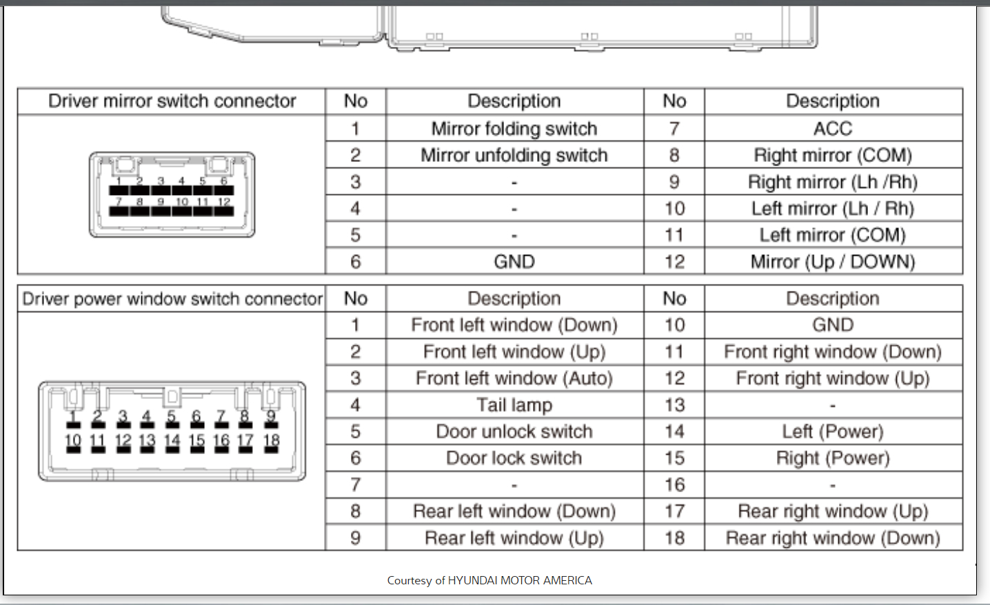 I hope you were talking about the power window switch connector pinouts because I have included those in the diagrams down below for you. There is one for the driver's window, the rear windows, and lastly one for the power assist. Please feel free to ask if you need help with anything else.