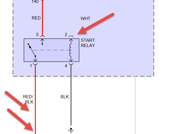 see pics if lwht wire is sending power to relay and pink is not sending to trans switch then the trans switch may be the culprit. dual arrows on one pic go from relay to starter. one arrow on same pic comes from trans switch.