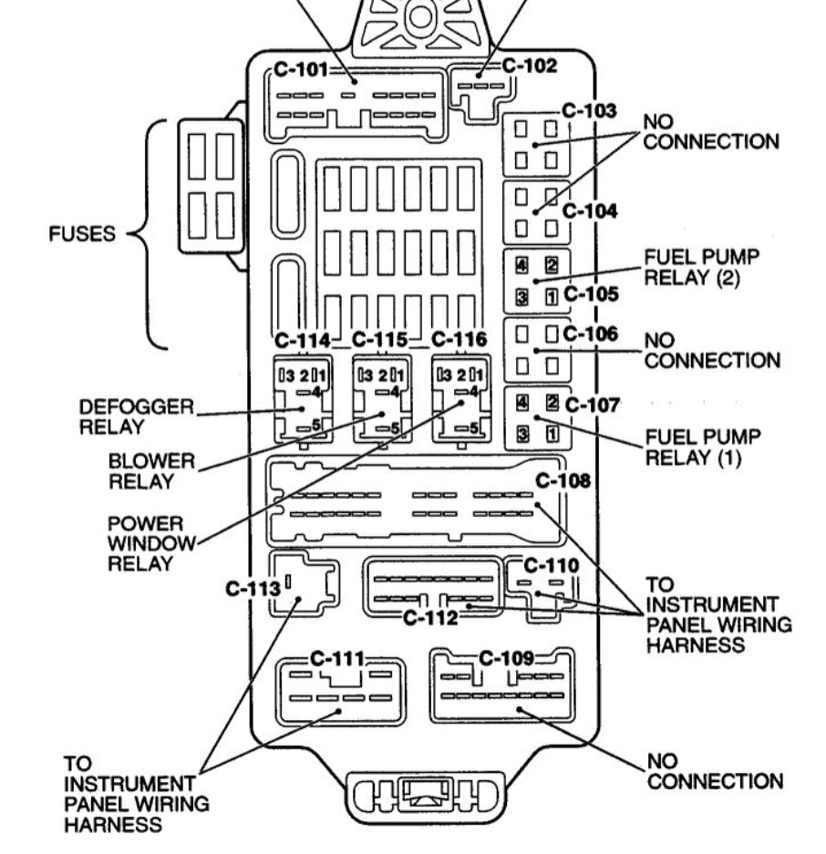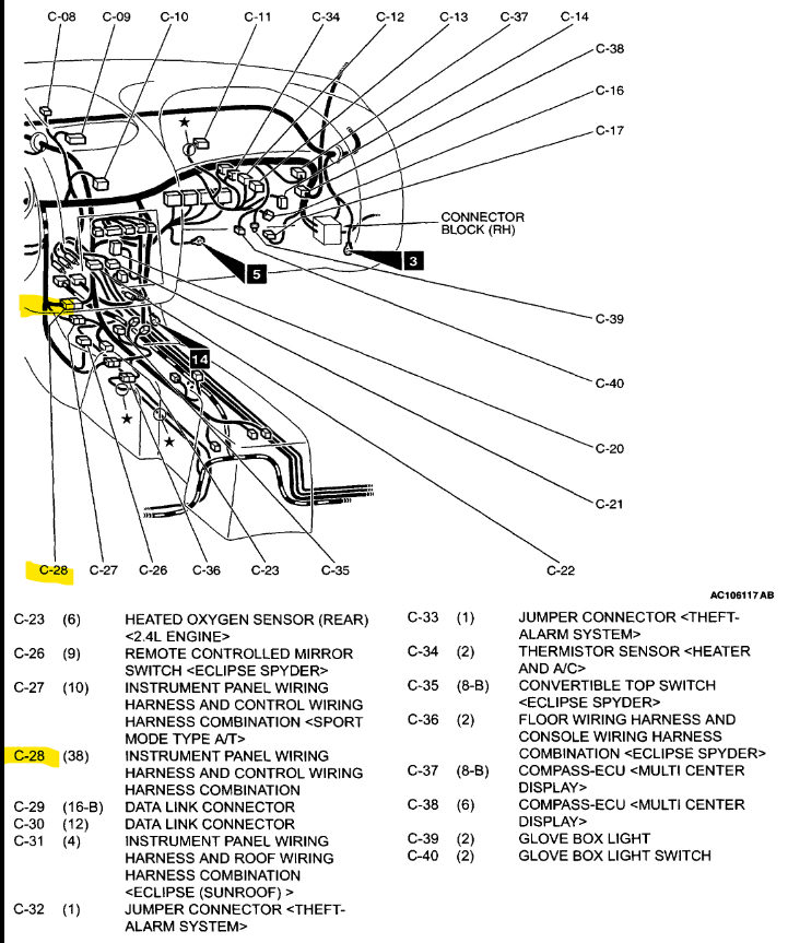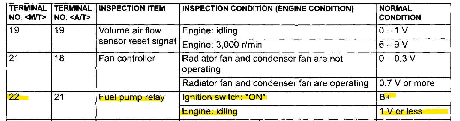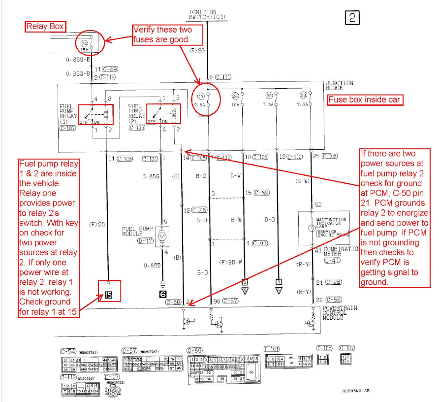 The C28 connector looks like it's in a pretty difficult place, somewhere in the lower center console. So, checking the circuit from the relay to the ECM connector for an open circuit to begin with will be easier. I'll find the ECM pinout.