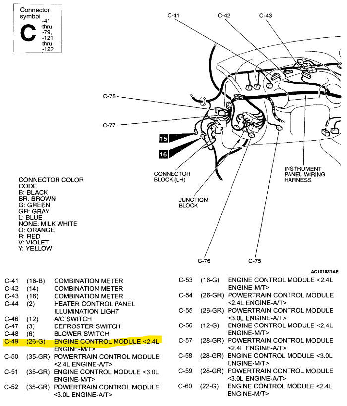 There are the connector C 108 at the Junction Block, also C 28 a connector in between the ECM and the junction block, and then the ECM connector itself.